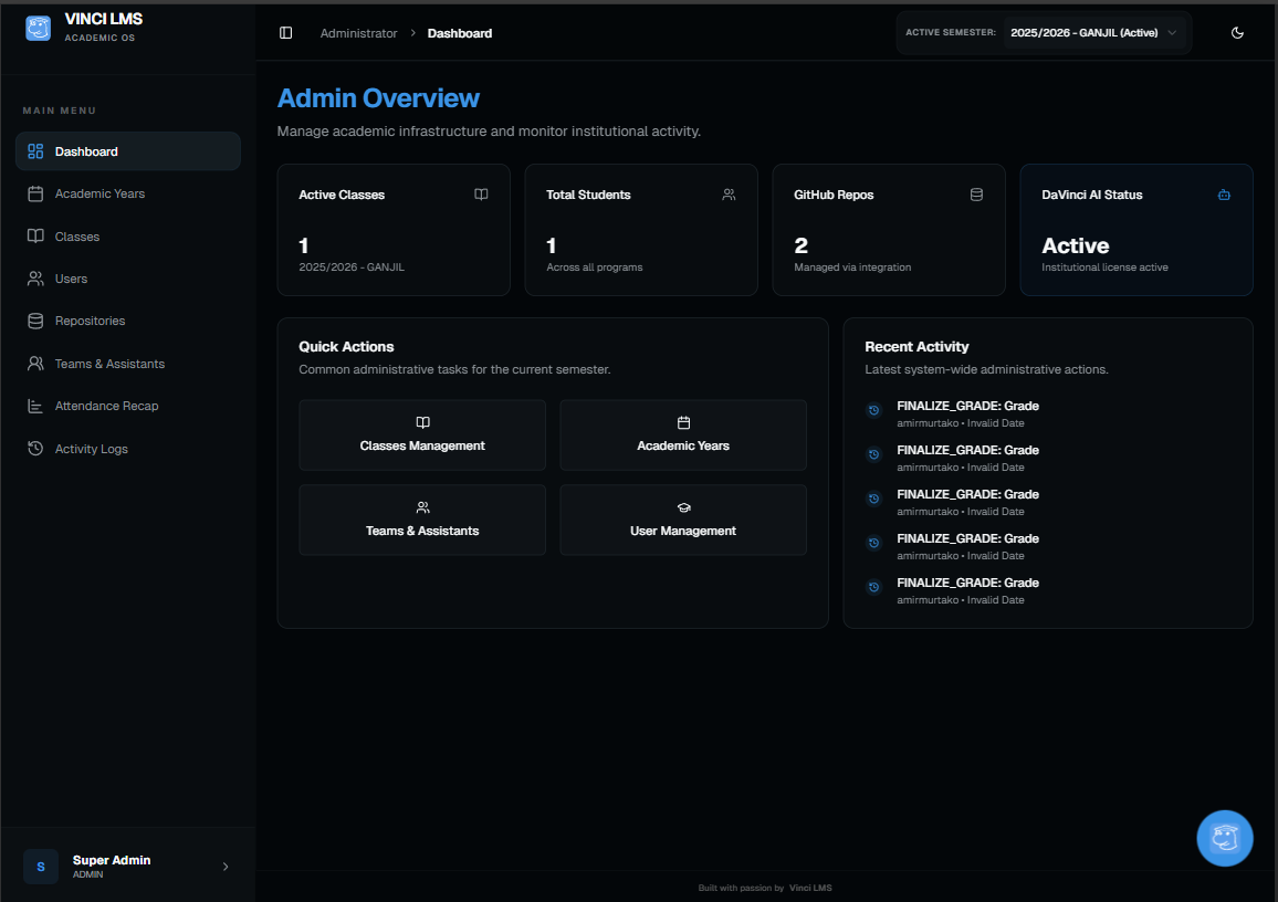 Vinci LMS — Academic-Grade GitHub Classroom Management